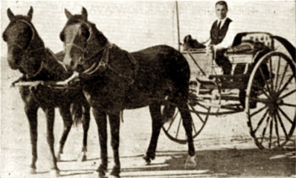 Frank Madden, of Milparinka, used a buggy and pair; he kept three pairs of buggy horses, two hacks and a pack horse. It was a familiar sight to see him with his team yoked up in his light Abbot buggy ready for a trip out to the Queensland Border Crossing places. Fresh horses, water bag and tins filled, tucker box under the seat, hobbles and horse bell, quart pot, a couple of blankets and tent fly completed the load. Occasionally he carried a saddle and took a hack with him.